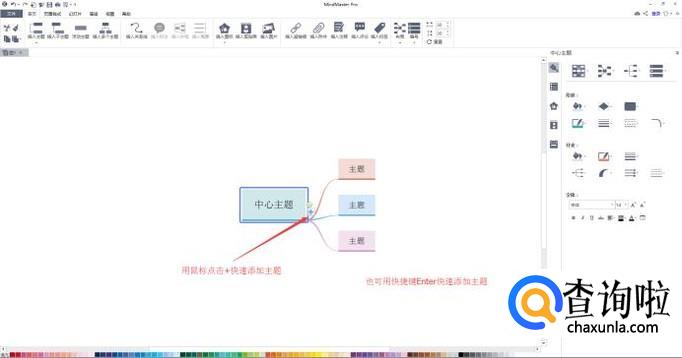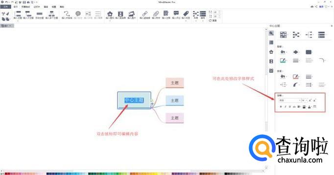 然后依次添加子主题,再双击主题编辑内容即可。当然你也选中某个主题,直接敲击键盘输入文字后,再敲击Enter键输入文字。在右侧菜单栏中可修改字体样式等。