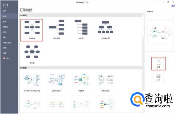 软件下好之后,接下来我们要创建一个新的思维导图。创建思维导图的方法主要有两种,一种是新建空白画布,然后在画布上建立思维导图;另外一种则是双击模板进行套用,如下图所示