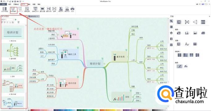 之后我们可以选择直接将思维导图用作幻灯片演示,点击菜单栏----幻灯片---自动创建即可。
