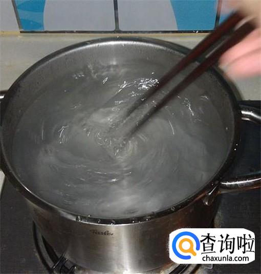 我们将冰粉的粉末倒入开水中,并不停的用勺子搅拌,确保冰粉溶解的比较均匀,然后自然放凉。