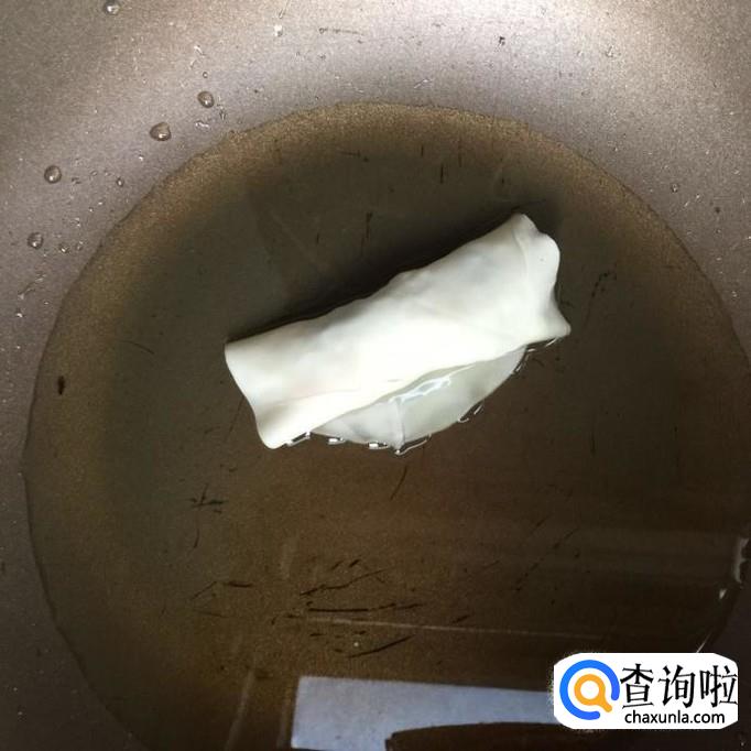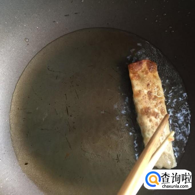 接着往锅中加入适量的食用油,待油冒烟,放入春卷煎至两面金黄,就可以出锅了。