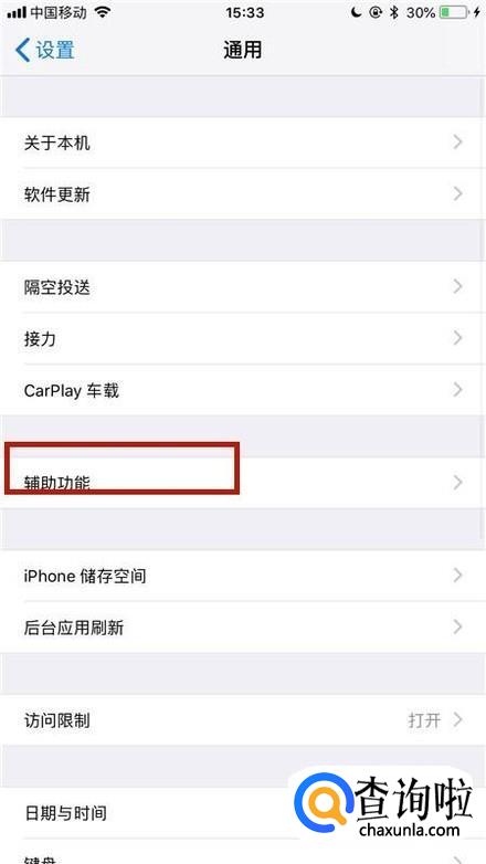 接着点击辅助功能,如下图所示。