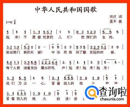 我国的国歌是“义勇军进行曲”,歌词内容如下:起来!不愿做奴隶的人们!