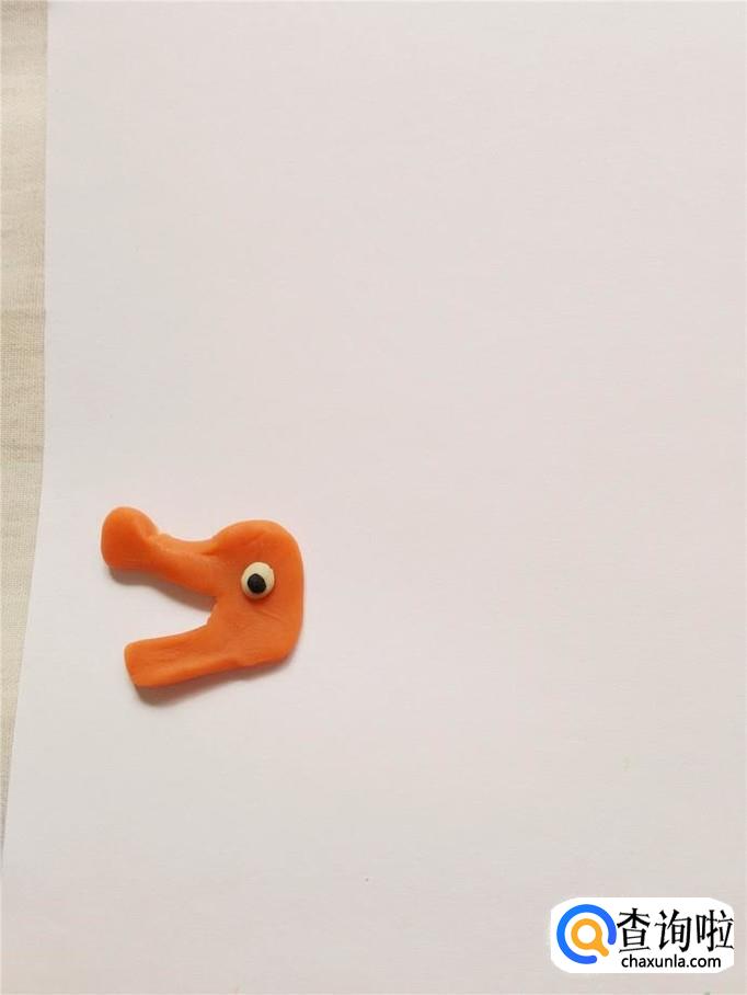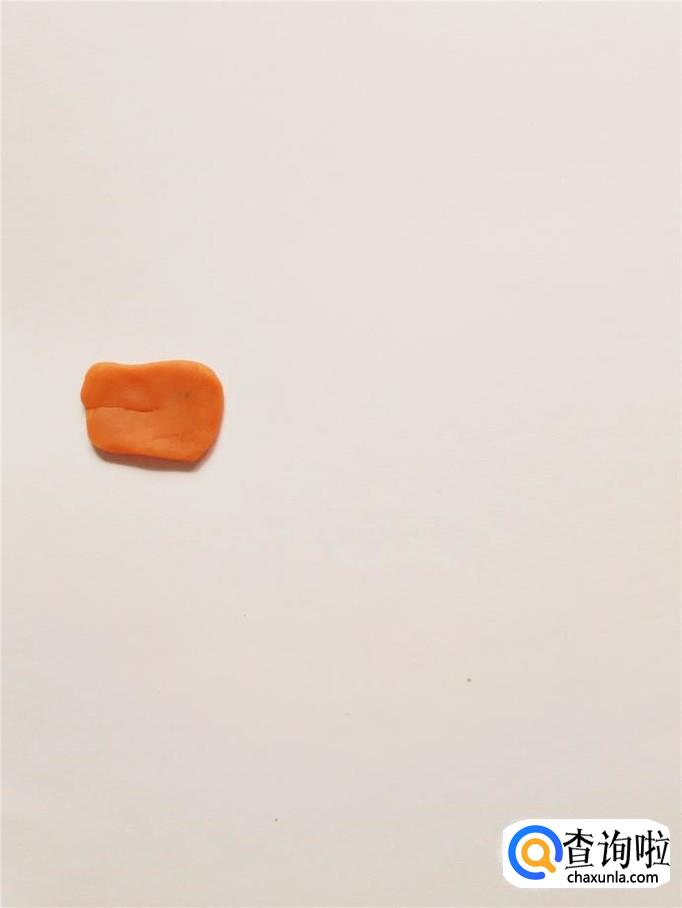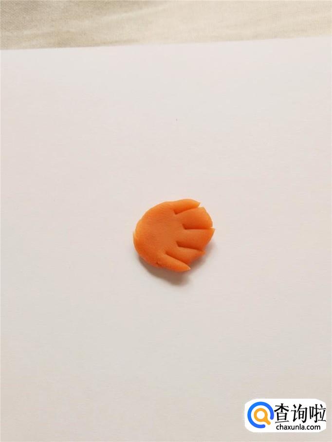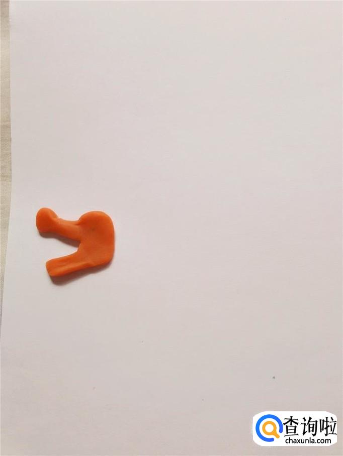 先用桔红色捏一个小方块,用剪刀从左边剪开一个口子,当作嘴巴,并把上片嘴巴中间捏窄。