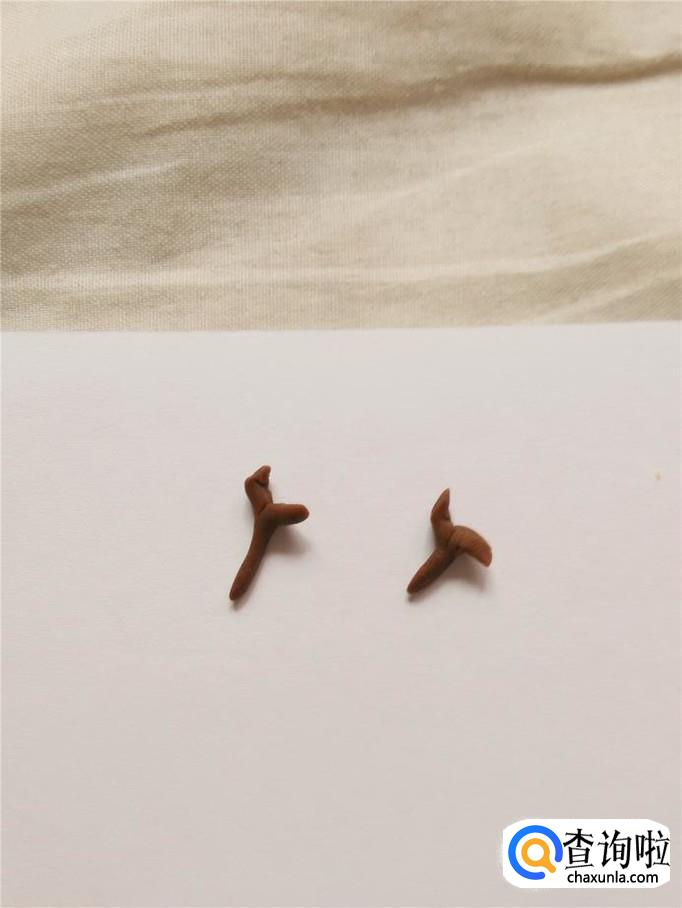 用棕色捏两个小树权的形状,粘在龙的头顶上,当作龙角。