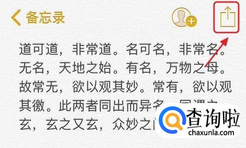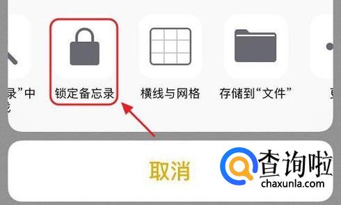 那么备忘录又该如何隐藏呢?同样打开备忘录中要隐藏的那一条记录,然后点击右上角的分享图标,然后屏幕下方会弹出“锁定备忘录”选项;