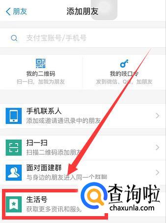 打开以后找到如图所示的【生活号】。