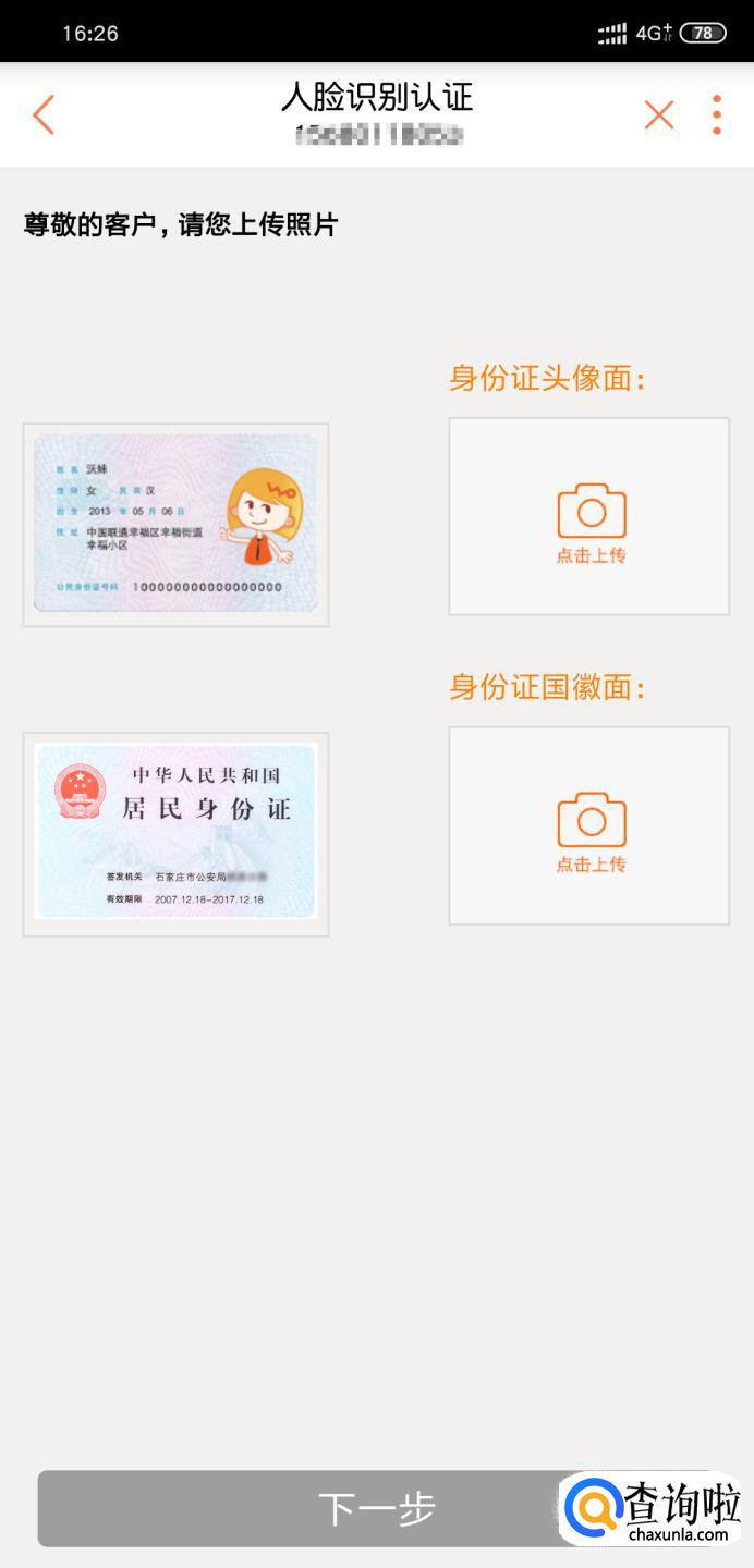 短信验证/ICCID验证通过后,无需预存话费时,点击下一步,进入实人验证阶段,用手机正对身份证即可。
