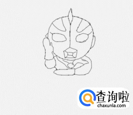 在头部下面画出艾克斯奥特曼的两只胳膊及手部,如图所示: