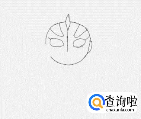 在头部的基础上我们再画出艾克斯奥特曼的面部细节及眼睛,如图所示: