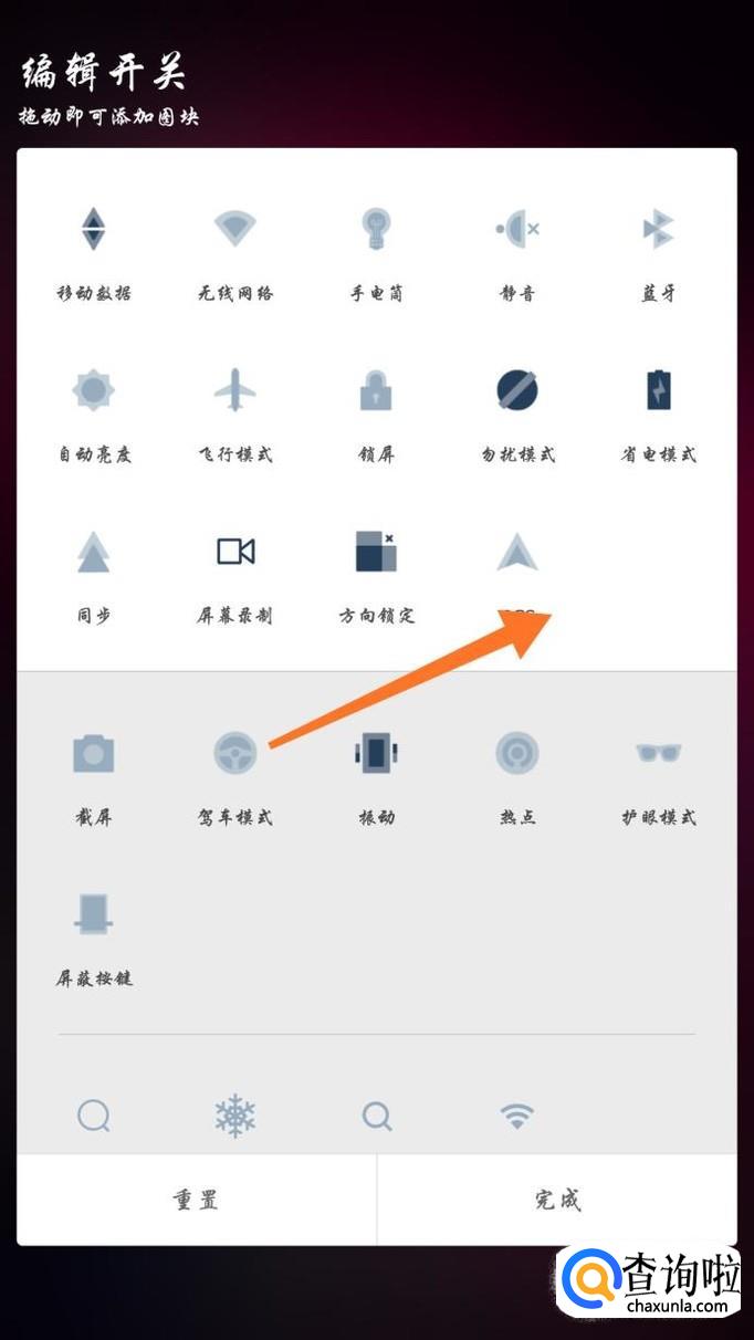 长按“驾车模式”,把“驾车模式”拖动到上面来,点击打开驾车模式。