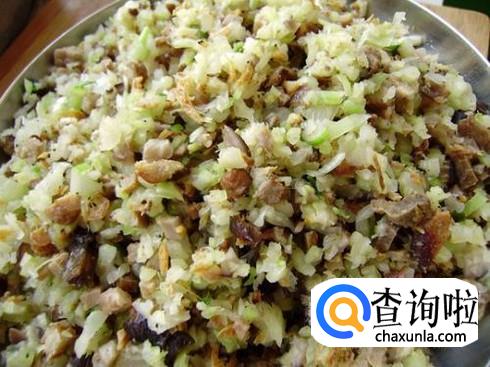 将剩余的葱、姜、辣椒放入盆中,再将炒制五成熟的五花肉和生白菜倒入其中,加入适量食物盐、酱油、调料、白糖等。然后,搅拌均匀,使之入味,调制成馅料即可。