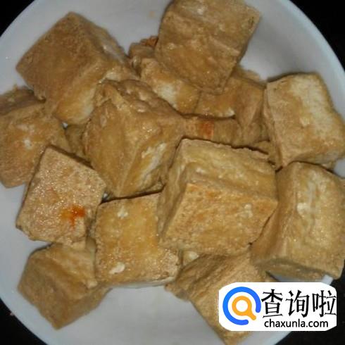 再者,处理豆腐:将买来的豆腐切成大小相同的长方体,放入盘中,排列整齐,搁置锅中烹煮五分钟左右,然后取出入盘,待用。