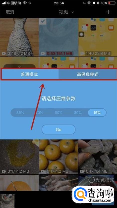接着选择我们要的压缩参数并点击go,如下图所示。