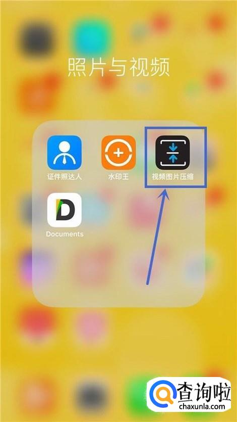 首先在我们的手机桌面上找到视频图片压缩并点击它,如下图所示。