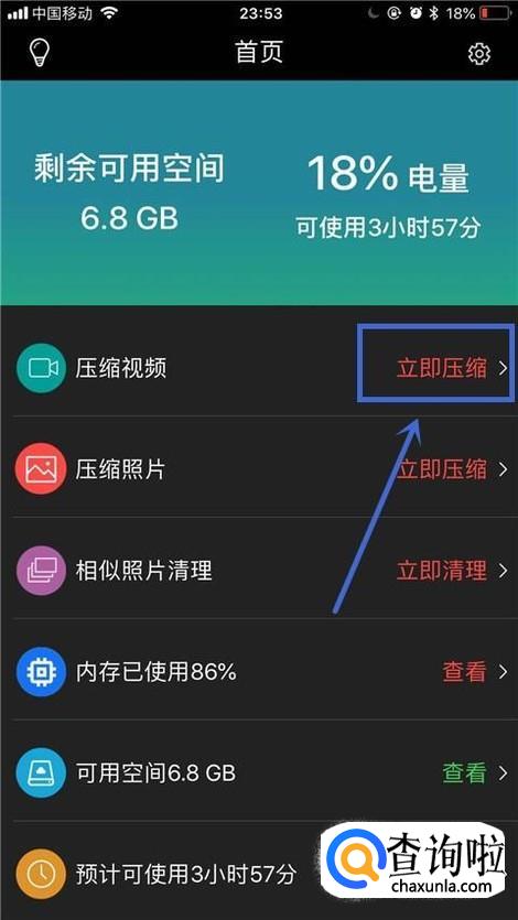 然后点击视频压缩右侧的立即压缩,如下图所示。