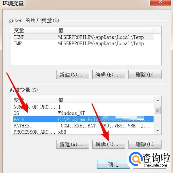 点击系统变量下的‘path’,并点击下方的‘编辑’按钮。
