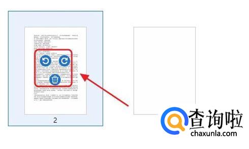 我们找到想要旋转的那一页,然后鼠标移动到缩列图上面,接着页面上方会显示三个图标,分别是左旋转、右旋转以及删除,想要旋转的话点击前两个选项即可;