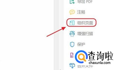 在软件的右侧我们首先点击“组织页面”,这样就能快速的查看目前PDF文件的全部页数,