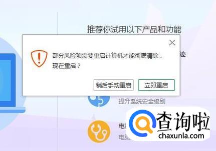 接着点击立即重启,如下图所示。电脑重启以后应该就能够解决电脑中毒问题了。