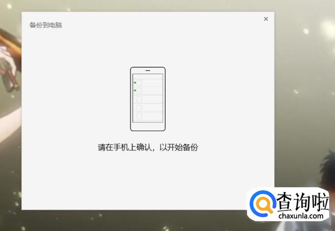 在换手机之前,选中备份至电脑,弹出提示,需要在手机端确认