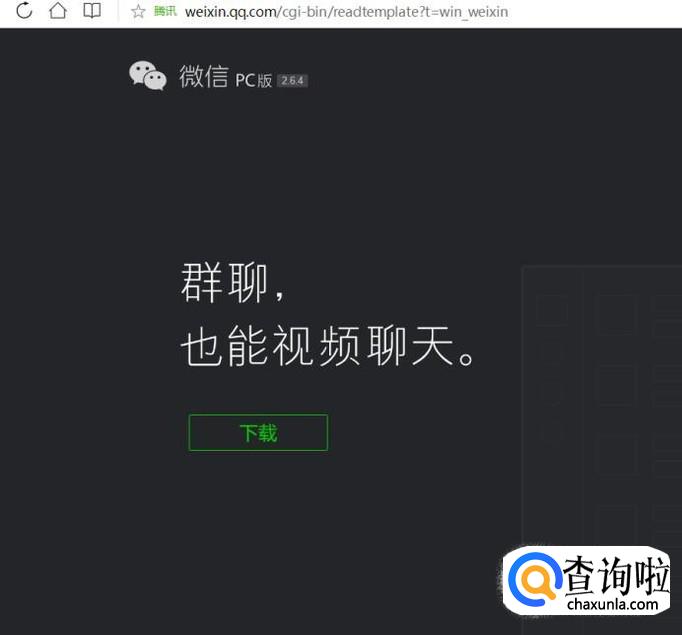 登录腾讯微信PC版的下载页面,下载微信PC版