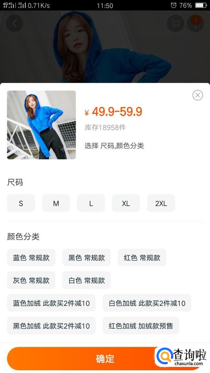 选择适合自己的尺码,选好之后点击“确定”,然后付款成功之后,等待收货就好啦。