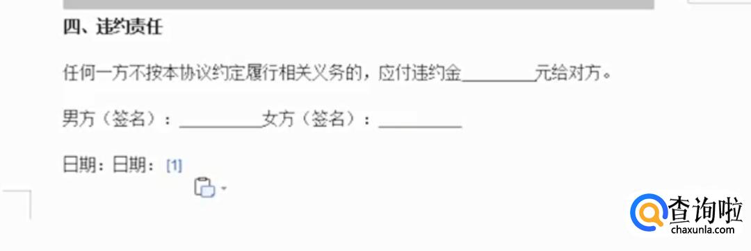 最后填写违约责任。如果其中一方没有按照以上协议履行义务,就要赔付对方相应的违约金。