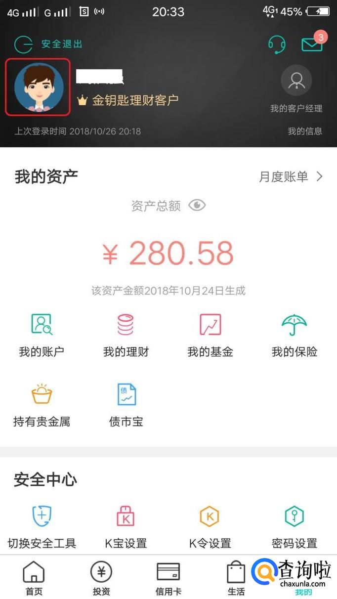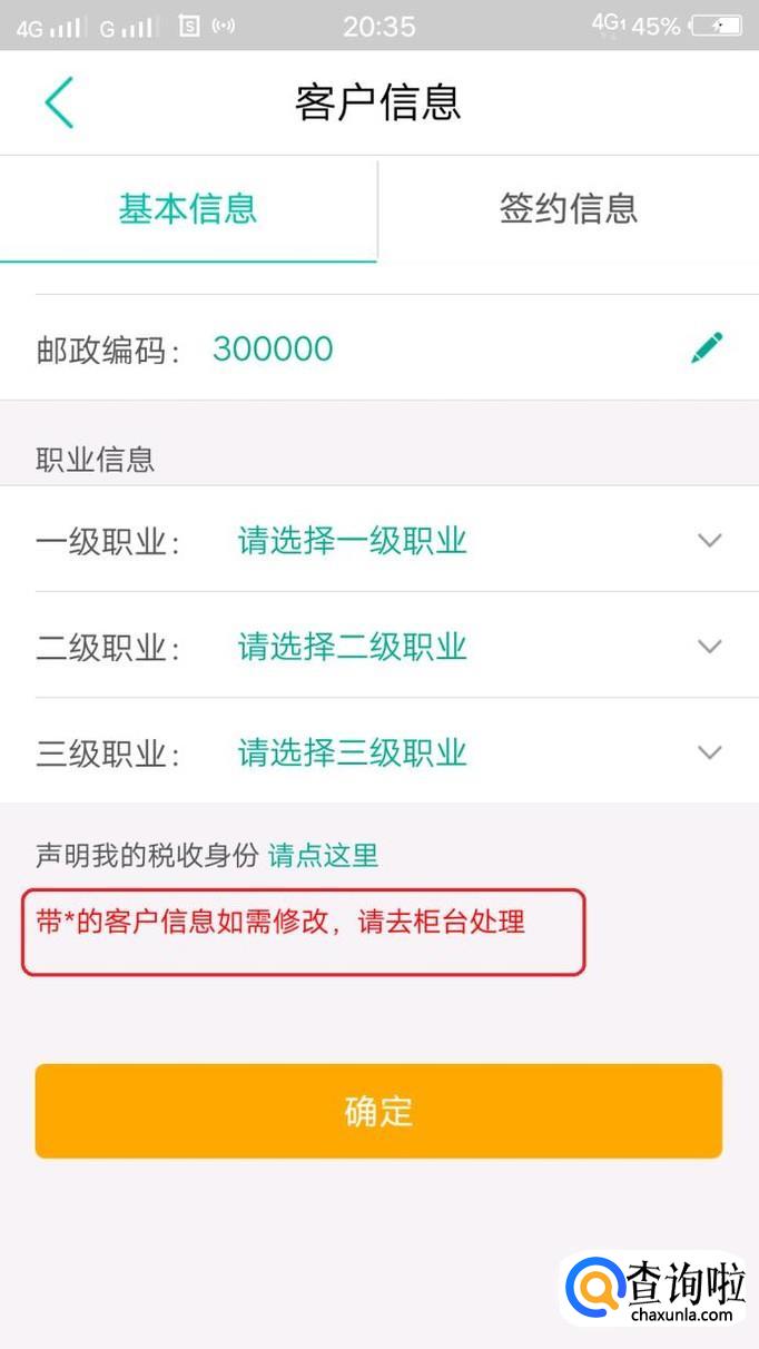 下方有提示,带*的客户信息如需修改,请去柜台处理。