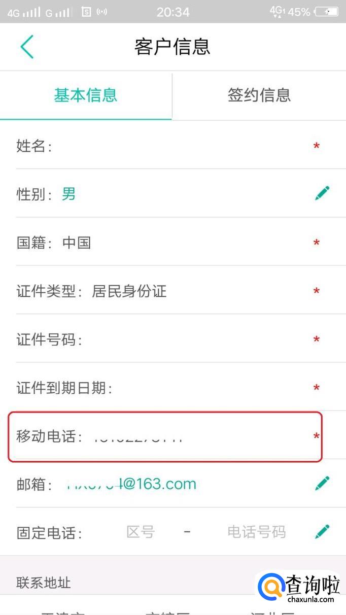 进入“客户信息”页面,如图所示,我们能看到我们预留的移动电话号码,但是我们发现,电话是带*号的。