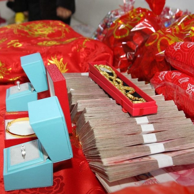 “万紫千红”是15万元,"一片绿"新郎可以看着给。15万元起步价的彩礼,足以让菏泽姑娘成为山东最"贵"的新娘。菏泽的彩礼一般是3斤3两,这里指的是100元钞票的重量,大约是14.35万元。现在又出现"万紫千红一片绿"。