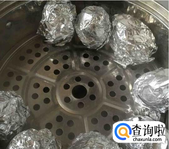 都塞好后,再用锡纸包起来,蒸锅里先放好水烧开后,再把蛋放进去蒸个一个小时