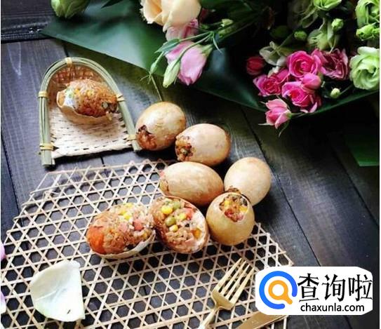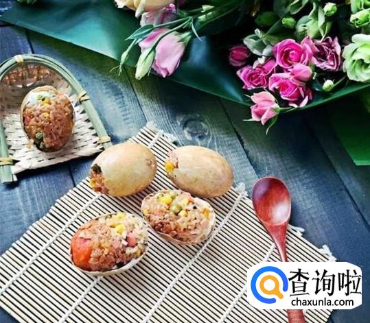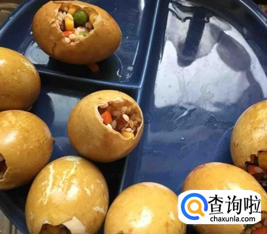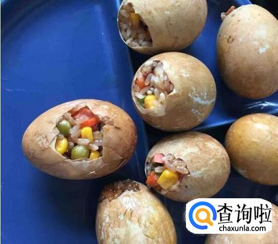 再把调好的糯米配料塞进蛋壳里,塞到9分满就可以了。