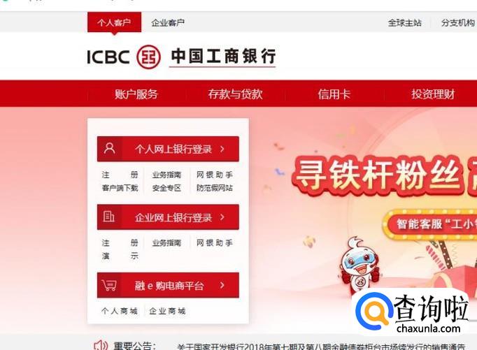 在中国工行银行的官网上找到个人网上银行,如果先前没有注册,可以用工行卡号进行注册,然后登陆就可以了。