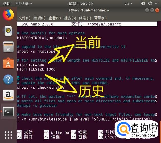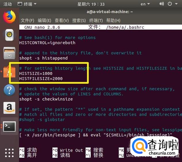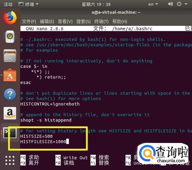 找到HISTSIZE和HISTFILESIZE这两个参数。如果它们已经被设置过来,就修改这些值。如果这些参数还没有出现,只需添加它们。出于我们的目的,我们可以轻松地将1000行存储到磁盘,并将最后的500行加载到内存中。对于大多数系统,这是一个保守的估计,但是如果你觉得对性有的影响,可以进行调整: