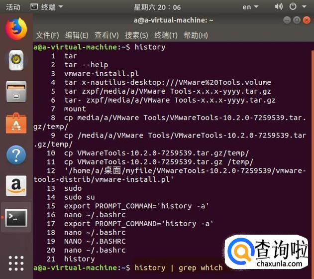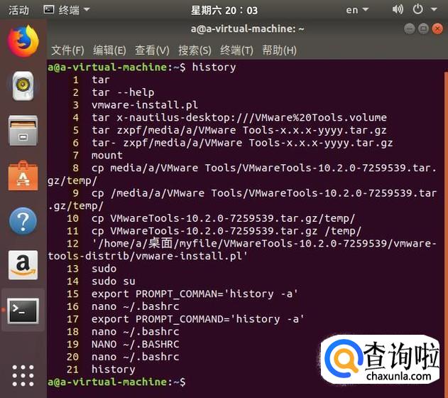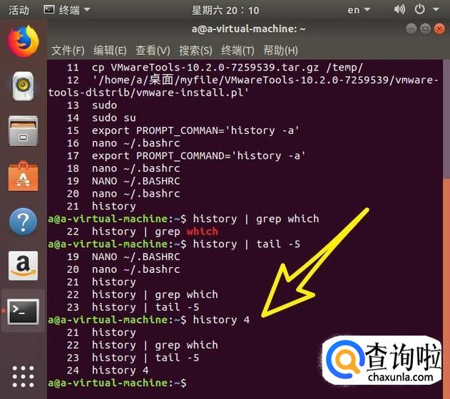 查看命令的历史很容易,直接运行history命令。