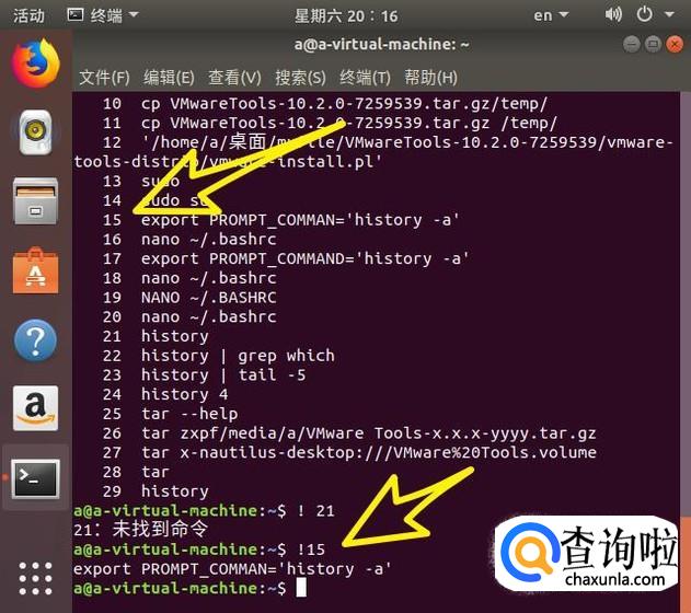 将整个bash历史显示出来很不错,但它并不能帮助我们轻松访问这些命令,除非作为参考。如果我们想要执行bash历史记录中的第n个命令,比如第15个命令,输入 !15 就会立即回顾并执行与历史记录第15个关联的命令。