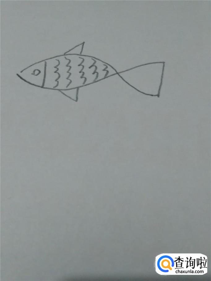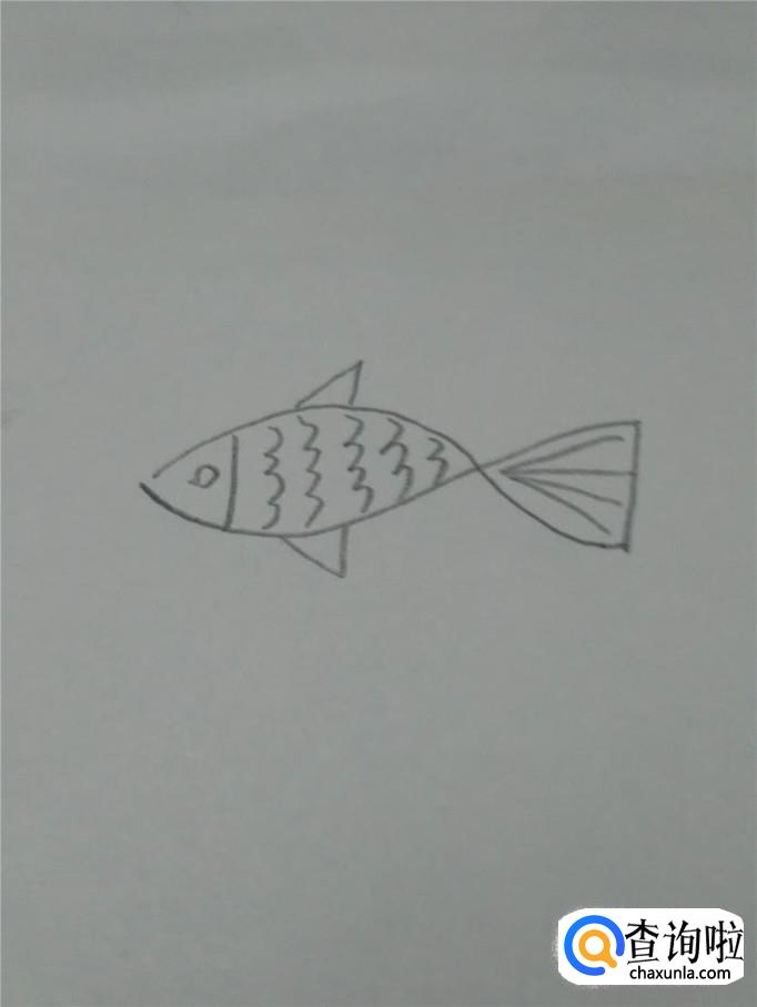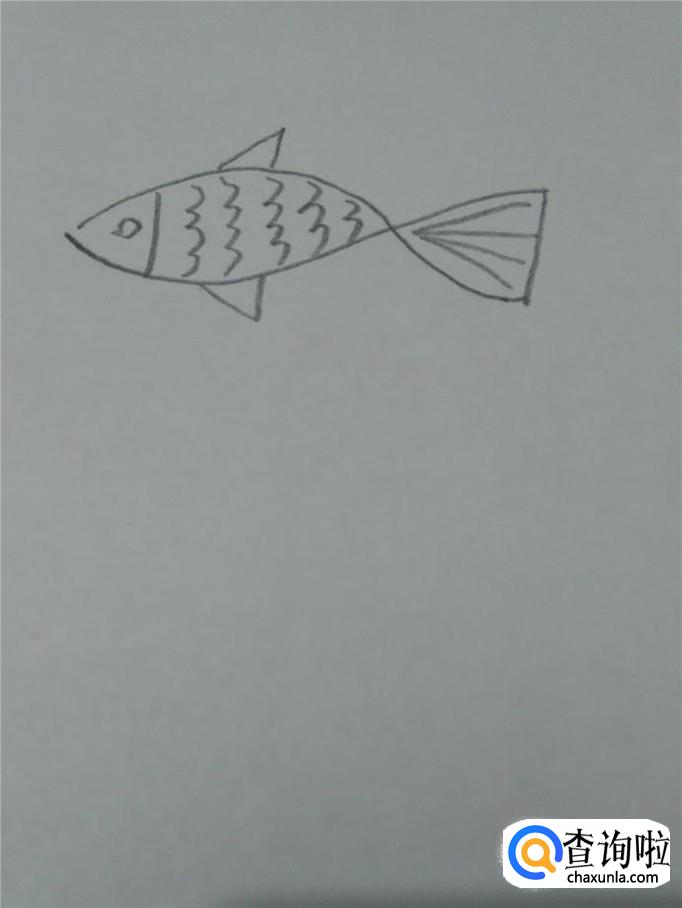 最后在鱼尾巴上画几条短线,表示鱼尾上的纹,这种画法最简单也最清楚。