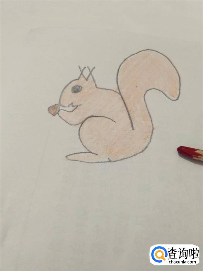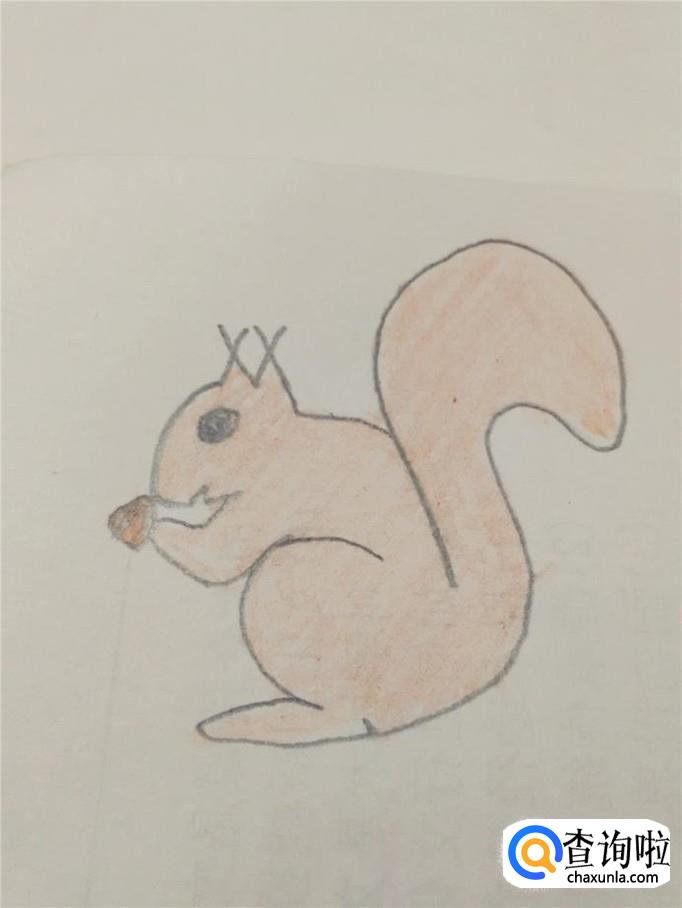 最后用棕色彩笔把小松鼠和松果涂成棕色,可爱的小松鼠就画完了。