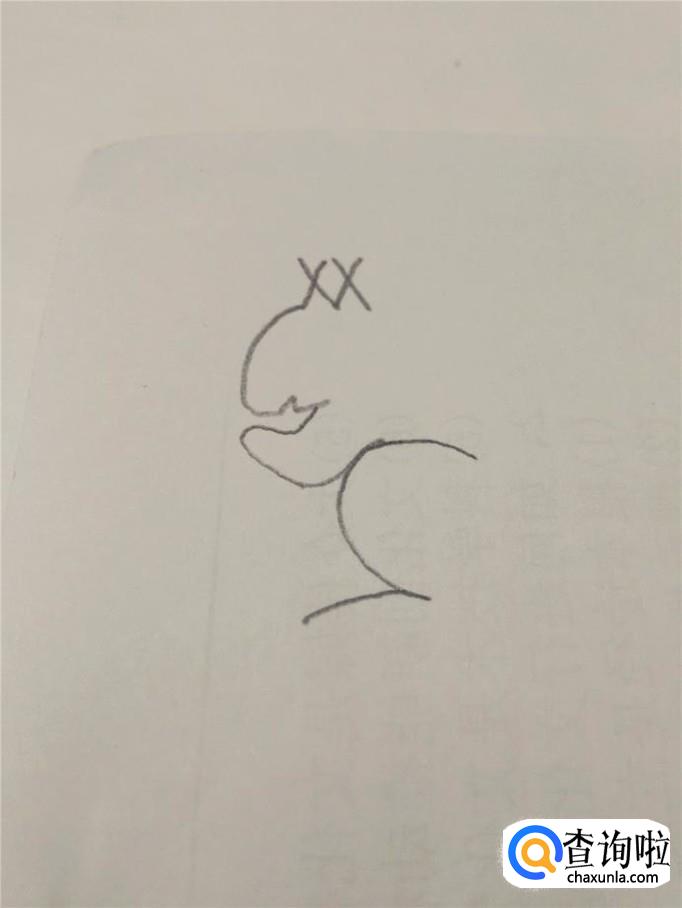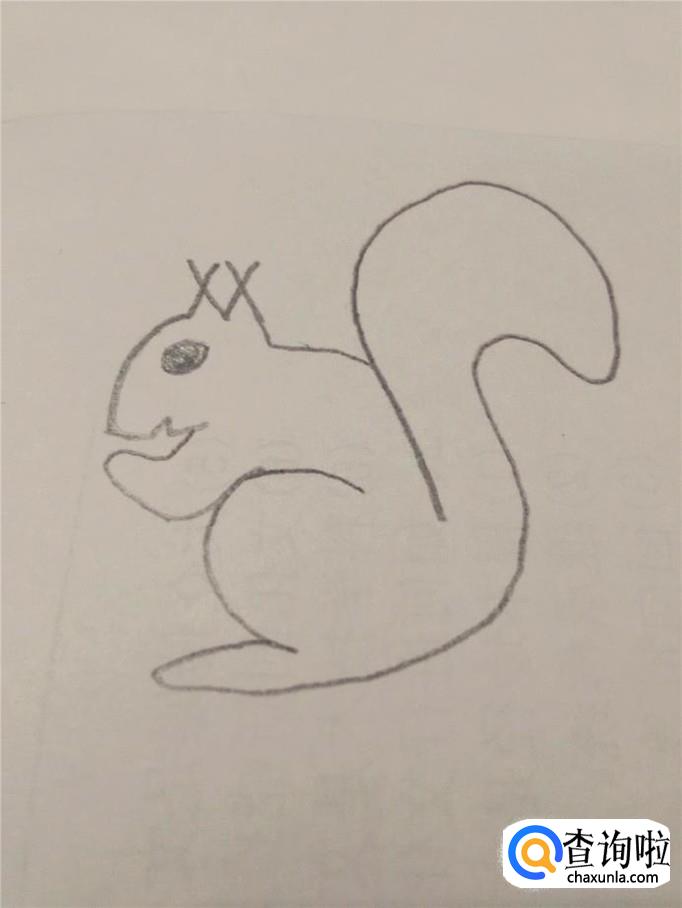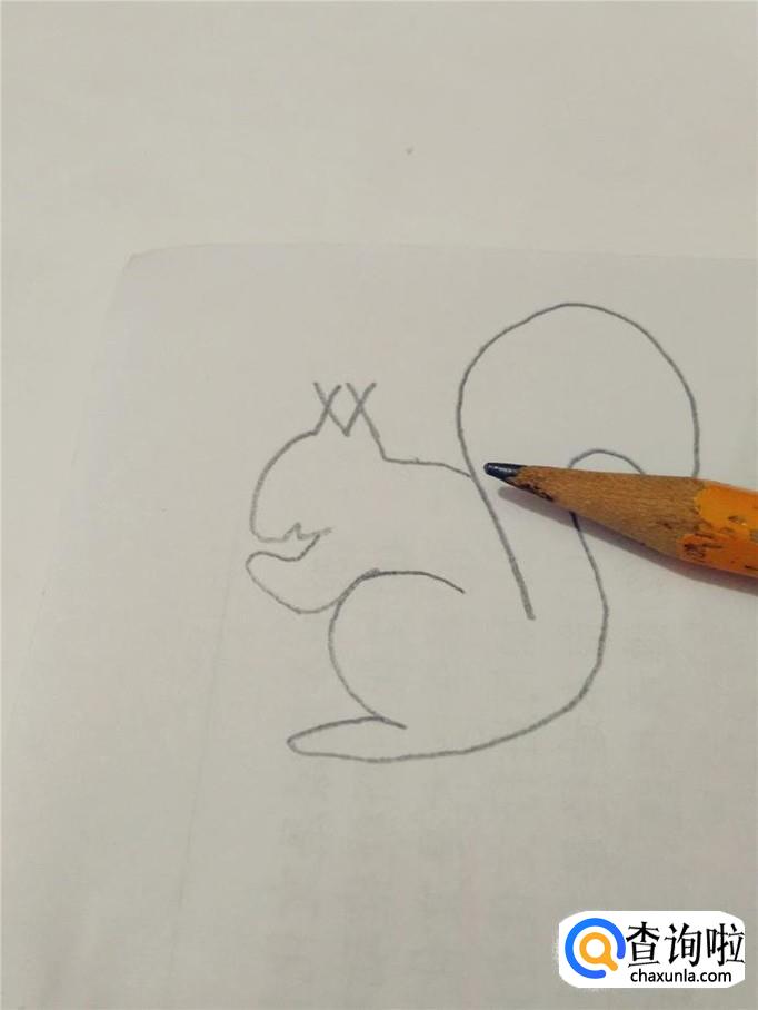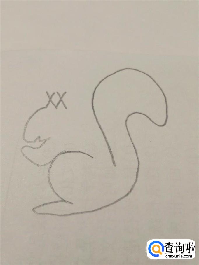 先用铅笔在纸上画两个X,表示小松鼠的耳朵。