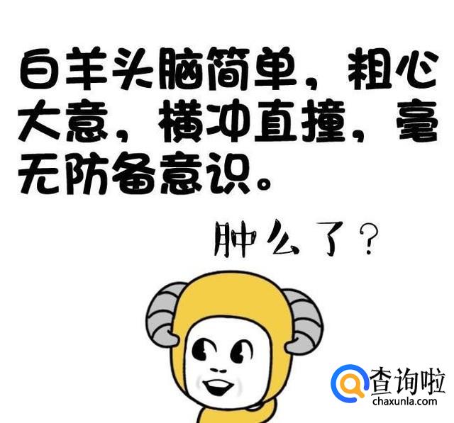 白羊座【3月21日-4月29日】火象星座,羊羊冲动冒险,拥有无比强大的自信,一副天不怕地不怕的样子,看似鲁莽的羊羊其实的最单纯的,心机?你确定这个星座的人会有这种东西?真性情的可怕。脾气较大但是不记仇。由于是黄道第一宫又是火星作祟,冲动热血有喜欢第一强者的霸气在羊羊身上体会的淋漓尽致。在古代绝对是将军的不二人选。很专情。