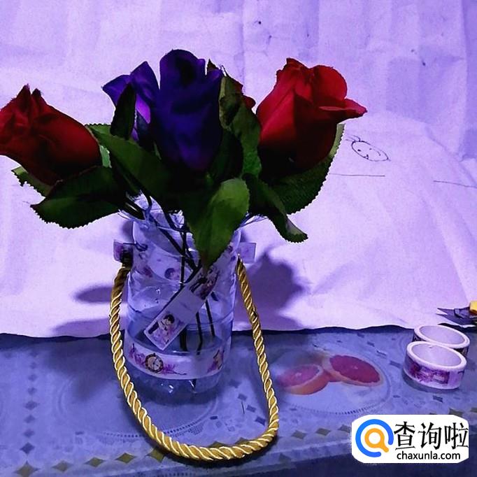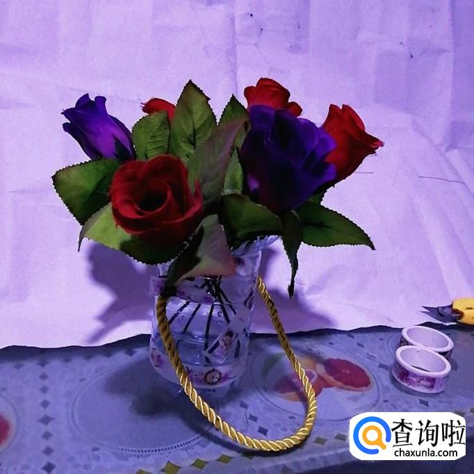 最后把花插进去,效果就出来了。这样我们的花瓶做好啦,因为是晚上,拍的照片没那么完美,需要学习的亲们可以参考一下我的方法。真的很简单很实用。