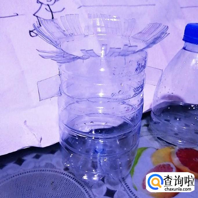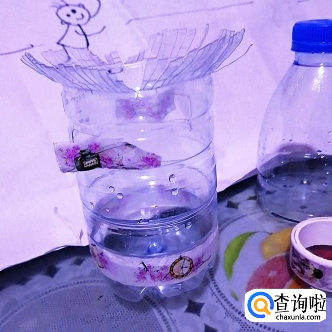 然后再在瓶子上面切出二个小正方形,用来吊绳子。