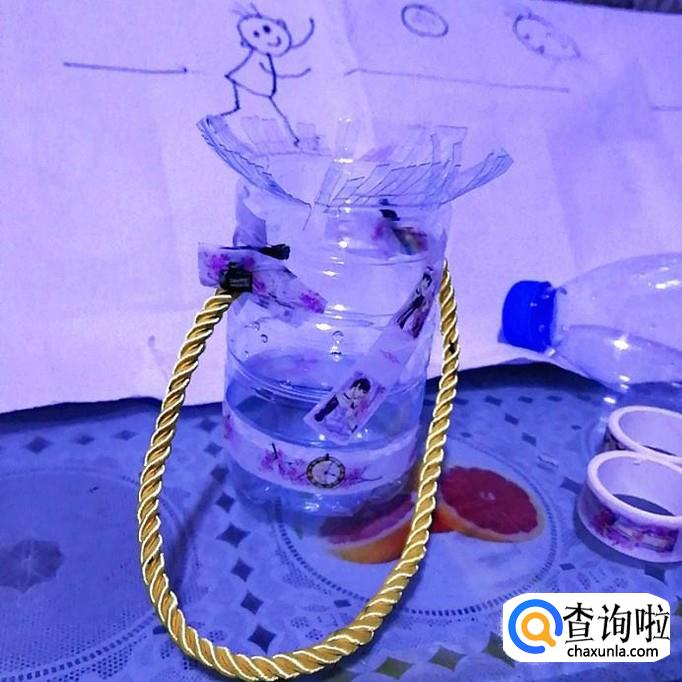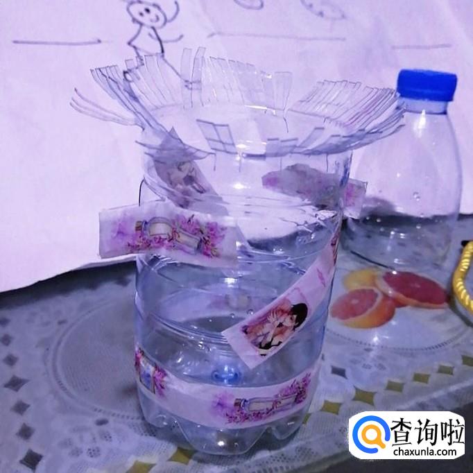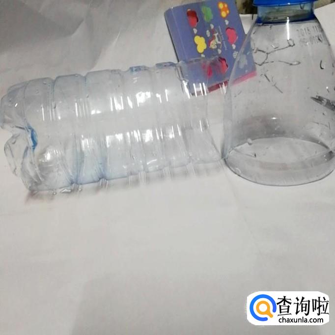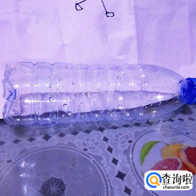 先把空的矿泉水瓶子撕掉瓶身上面的标签纸,再洗干净备用。