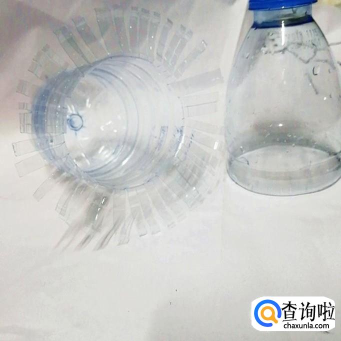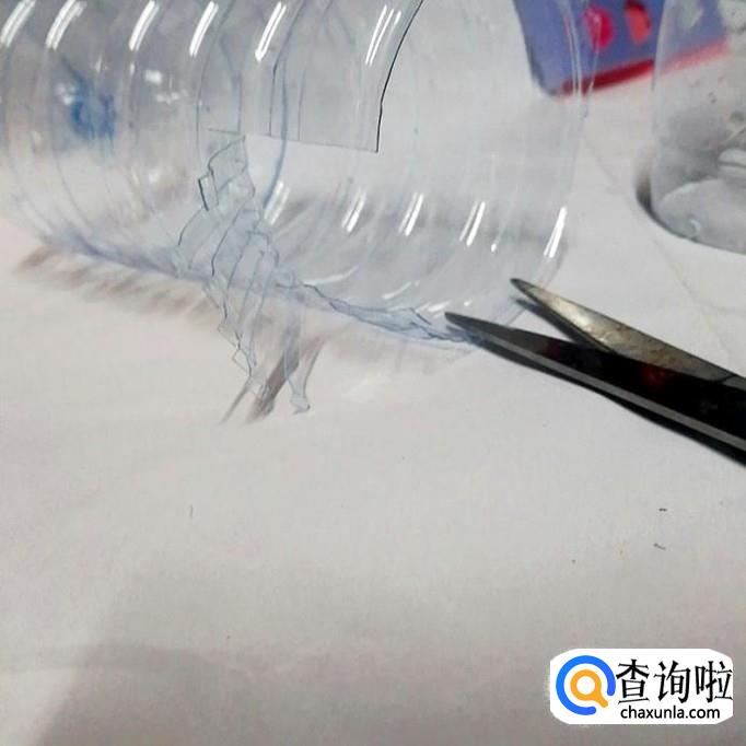 然后再用安全剪刀,把花瓶瓶口剪成细条,看起来更美观。