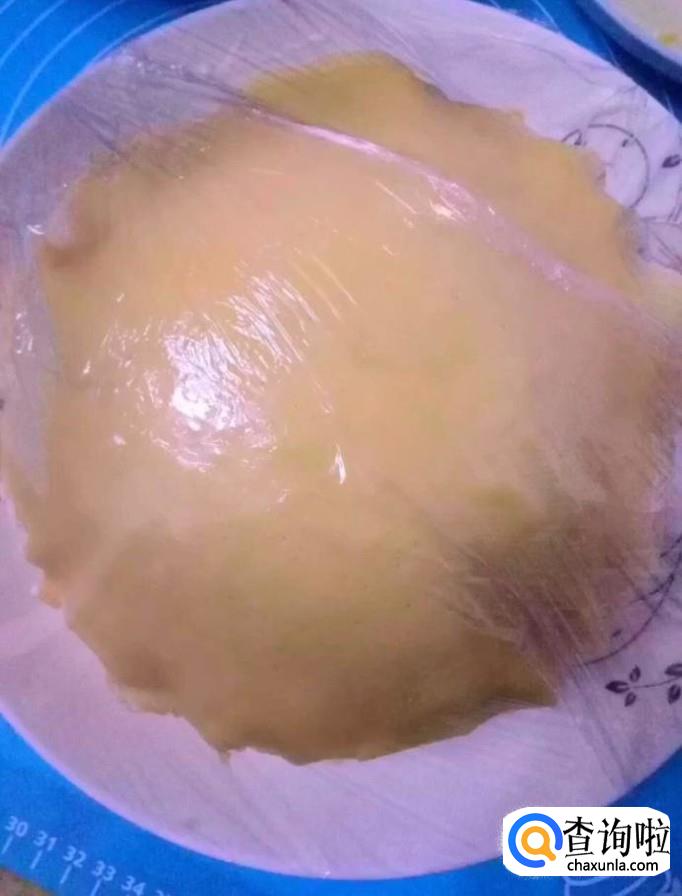 做好以后我们盖上保鲜膜,放入冰箱中,冷藏一夜,第二天取出来切块就可以享用啦!