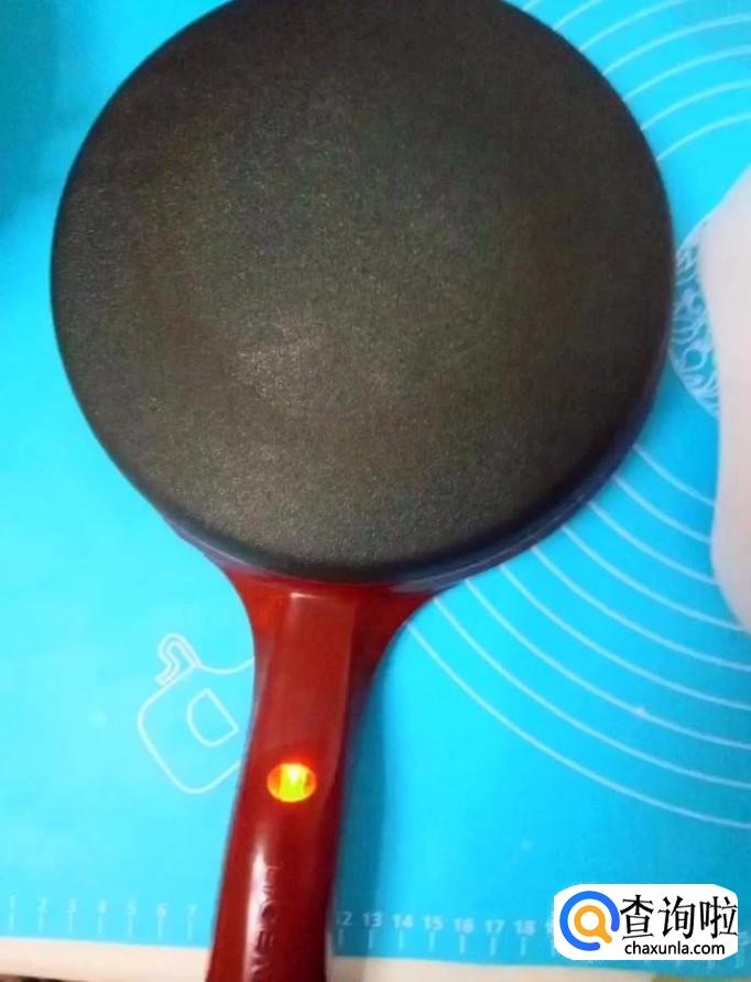 接着我们将适量的面糊倒入薄饼机上面,煎至起小泡就可以取下来了
