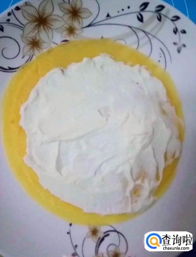 3个鸡蛋,白糖,30g黄油,纯奶,面粉,淡奶油400g,芒果