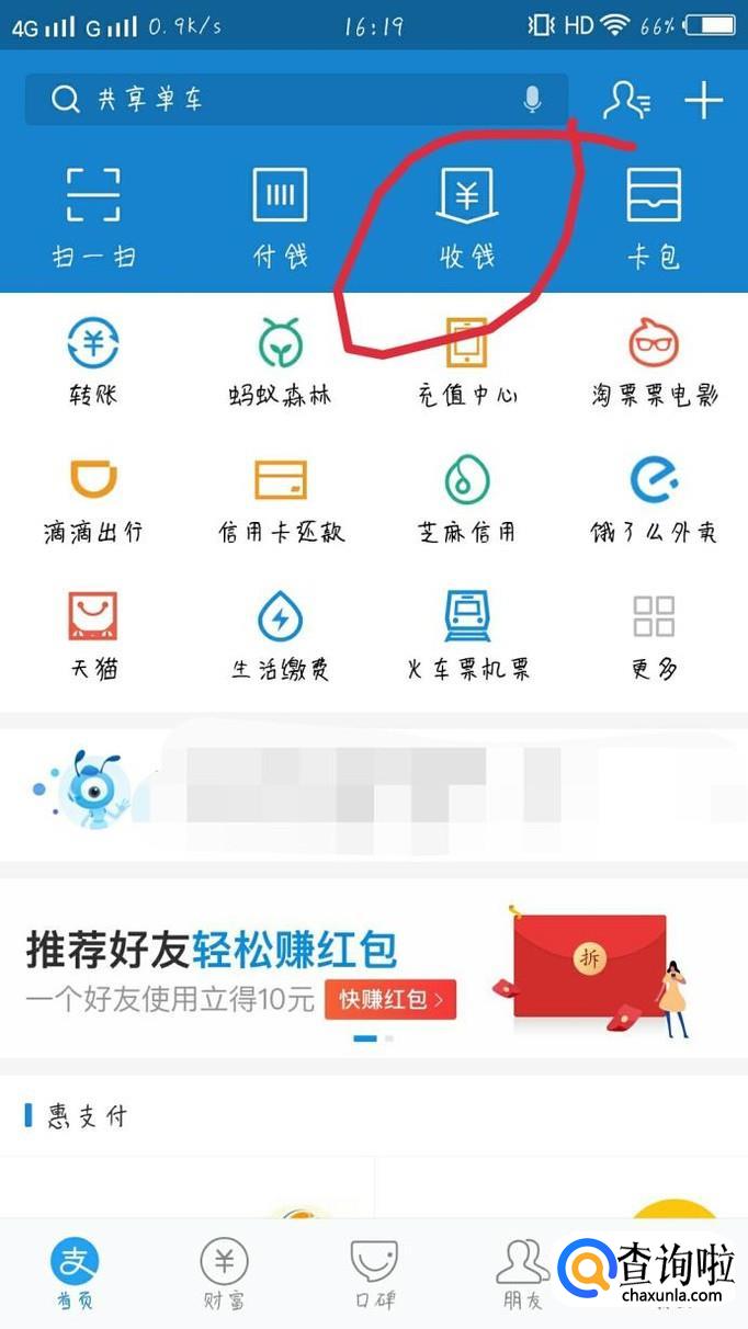 首先在众多的APP中打开支付宝APP,然后在首页找到“收钱”