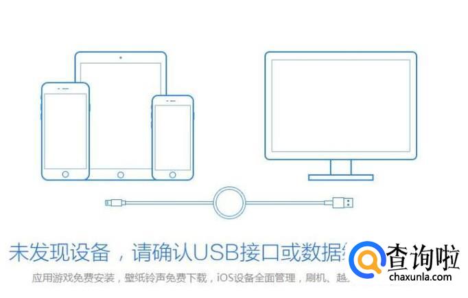 然后根据软件提示将我们的iPad和电脑用数据线连接起来,如下图所示。